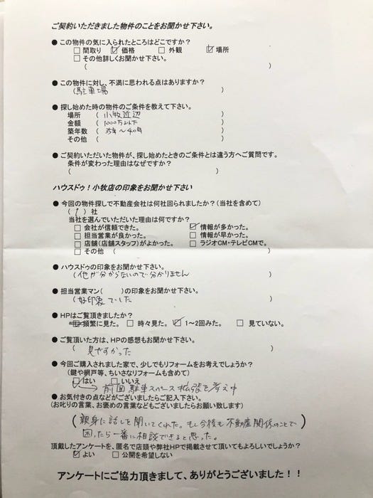 親身に話を聞いてくれた。もし今後も不動産関係のことで困ったら一番に相談できると思った。